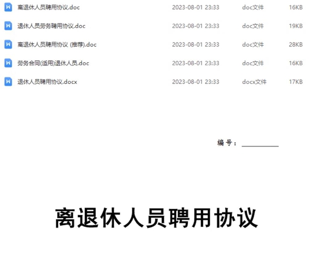 摘要:退休返聘协议书范本,公司职工员工离职退休反聘劳动劳务合同书模板