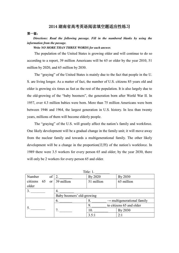 2014湖南省高考英语阅读填空题适应性练习旨在帮助学生熟悉高考题型,提升阅读理解能力。练习材料精选自历年真题和模拟题,涵盖不同主题和难度,确保学生全面掌握阅读填空题的解题技巧。通过反复练习,学生可以培养快速定位关键信息、准确理解上下文的能力,从而在高考中取得理想成绩。