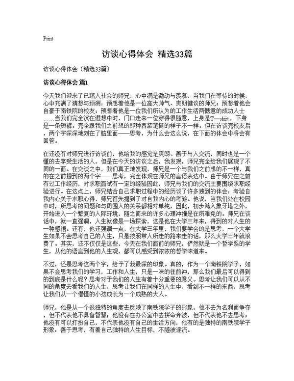 访谈心得体会(精选)是一份汇集了各类访谈经验与感悟的实用指南。它通过总结不同场景下的访谈案例,提炼出关键技巧与注意事项,帮助读者掌握有效的沟通方法。无论是职场新人还是资深人士,都能从中获得启发,提升访谈能力,增强人际互动效果。内容涵盖准备工作、提问策略、倾听技巧及后续跟进等方面,适合作为个人提升或团队培训的参考资料。
