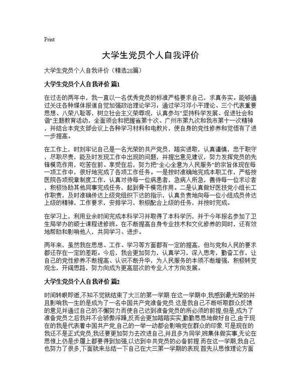 作为一名大学生党员,我始终以共产党员的标准严格要求自己,在思想、学习、工作和生活等方面积极发挥先锋模范作用。在思想上,我认真学习党的理论知识,坚定理想信念,不断提高政治觉悟;在学习上,勤奋刻苦,努力掌握专业知识,成绩优良;在工作中,积极参与党组织活动,认真完成各项任务,热心服务同学;在生活中,团结同学,乐于助人,保持艰苦奋斗的作风。今后我将继续努力,不断完善自我,为党和人民的事业贡献青春力量。