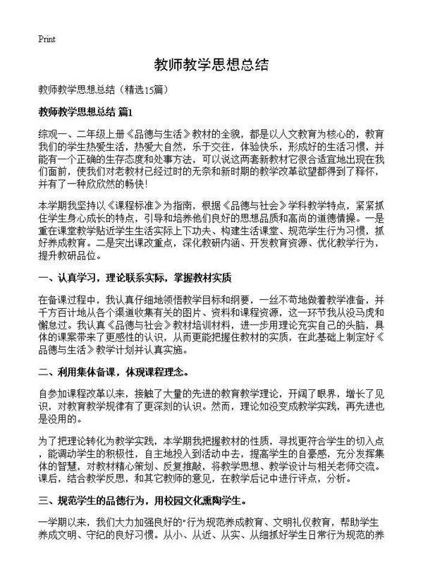 教师教学思想总结应体现教师的教育理念、教学方法和育人目标。在长期的教学实践中,教师应坚持以学生为中心,注重培养学生的自主学习能力和创新思维,同时关注学生的个性发展和品德修养。通过不断反思和优化教学过程,教师能够形成独特的教学风格,提升教学效果,实现教育目标。