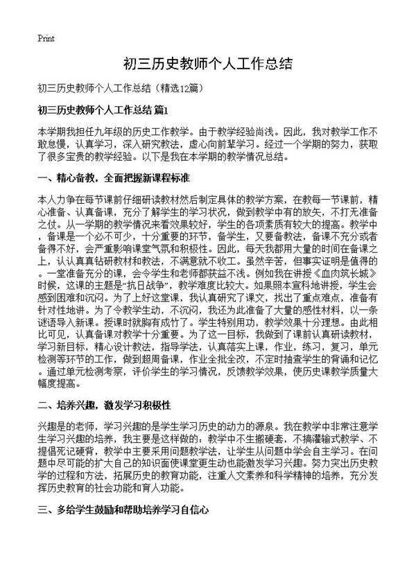 本学期在课堂教学中,我注重运用多媒体教学手段,通过历史图片、纪录片片段等直观素材,激发学生学习兴趣。针对中考要求,系统梳理了重要历史事件的时间轴,强化学生对历史脉络的掌握。在复习阶段创新采用"历史人物角色扮演"活动,帮助学生深化理解重大历史事件的背景与影响。同时加强史料分析能力训练,通过典型例题讲解,提升学生材料解析题的答题技巧。通过分层作业设计,兼顾不同基础学生的学习需求,班级历史成绩合格率较上学期有明显提升。