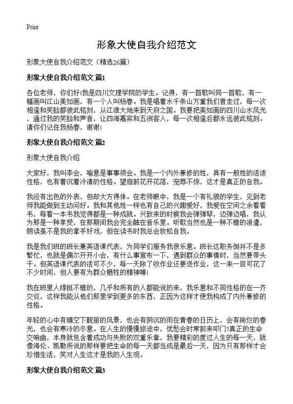 以下是一段可以增加的自我介绍描述:"作为本次活动的形象大使,我深感荣幸也深知责任重大。我将以饱满的热情和专业的态度,积极传递活动理念,展现活动精神。凭借在相关领域的丰富经验,我将努力搭建活动与公众之间的桥梁,用亲和力与感染力吸引更多人关注和参与。无论是线上宣传还是线下互动,我都会全力以赴,用真诚的微笑和专业的表现为活动增光添彩。"