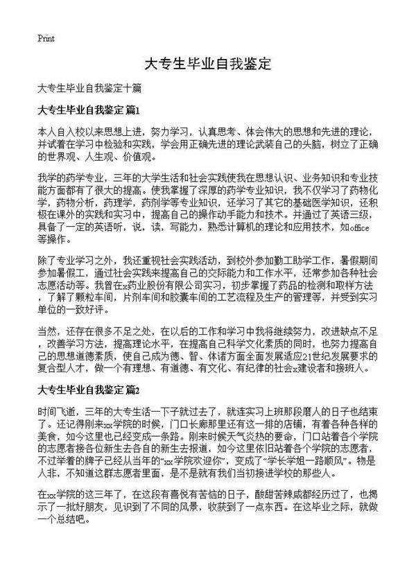 大专生毕业自我鉴定 在学校里面,我的思想有了很大的转变。在进入学校的时候,我的确是抱着学习的心态来的,但是由于大学生活是比较自由的,很多时间都是自己来控制的,所以我也是沉迷到了吃喝玩乐之中去了,对于上课就失去了积极性,这个问题直到大二才有所好转,因为学习的东西越多、经历的事情越多后,我对于这些娱乐之类的事情兴趣会变得越来越少,我更加希望自己的生活变得有意义一些,至少要为毕业之后的生活做提前准备才行。到了大三之后啊,我把大部分身心都投入到了提升自己能力这方面上,这也给我带回来了不小的回报。在这三年