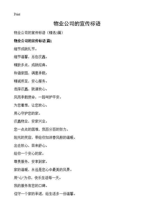 物业公司的宣传标语3篇 精致多点,成就经典。和谐家园,满意承载。精诚所至,安心服务。选择汉鑫,就请放心。风雨承载使命,一路呵护平安。为您着想,让您放心。用心守护您的家。汉鑫物业,安家兴业。您一点点的困难,我百分百的努力。阳光的笑容,带给你如沫春风般的温暖。出去放心,回来舒心。给你一个安心的家。尊贵服务,安享到家。家的温暖,永远是您心中最美的风景。用“心”为你,快乐生活每一天。我的服务有您的口碑。信守一个家的承诺,给生活多一份温馨。给您应该享受的生活。专心专注为物业,诚心诚意为业主。扬我大汉雄风,给您