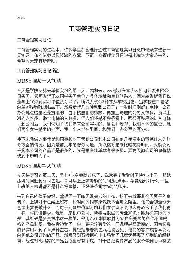 工商管理实习日记 老师告诉了xx同学实习单位的具体地址和单位联系人,因为她告诉我们说是早上10点到实习单位就可以了,所以大伙9点钟才从学校出发。出学校在二塘站乘坐3号线轻轨到xxx下,然后步行几分钟就到公司了。一看时间刚好10点钟。公司办公地点楼层还是挺高的,由于楼层高的缘故,再加上每层的公司又很多,所以上班的人也多,乘坐电梯的人也多,但人们还是不会挤着上,都很有秩序的进入电梯。到公司后,我们说明了我们是来公司实习的,夏老师安排了我们具体的座位,她们两个女生是坐的外面,我一个人坐在里面。和我同