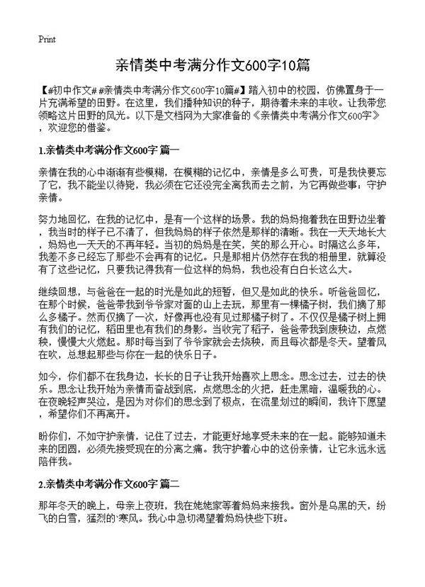 亲情类中考满分作文600字10篇 让我带您领略这片田野的风光。以下是文档网为大家准备的《亲情类中考满分作文600字》,欢迎您的借鉴。亲情在我的心中渐渐有些模糊,在模糊的记忆中,亲情是多么可贵,可是我快要忘了它,我不能坐以待毙,我必须在它还没完全离我而去之前,为它再做些事:守护亲情。努力地回忆,在我的记忆中,是有一个这样的场景。我的妈妈抱着我在田野边坐着,我当时的样子已不清了,但我妈妈的样子依然是那样的清晰。我在一天天地长大,妈妈也一天天的不再年轻。当初的妈妈是在笑,笑的那么开心。时隔这么多年,我差不多已经忘了